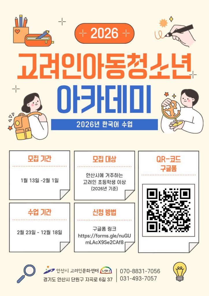 Home/게시판/교육/고려인 아동청소년 아카데미 – 한국어 수업 2026 교육 고려인 아동청소년 아카데미 – 한국어 수업 2026 jamir1501주 ago 29 Less than a minute Facebook jamir1501주 ago 29 Less than a minute Facebook Share Facebook Share via Email Print